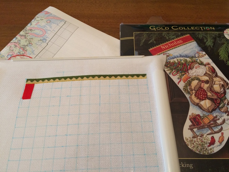 Привет, девочки! Меня зовут Лейсян, я из Уфы. Присоединяюсь к вашей дружной компании со своим сапожком. До финиша мне конечно не дойти с законченной работой, но немного с вами повышиваю. На фото результат двухдневной работы(!!!!) на 18 каунте идёт пока тяжеловато, да ещё участок скучный. Но мне уже нравится. Очень люблю новогодние димовские дизайны. Это будет мой четвёртый сапожок.