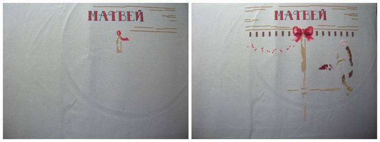 На этой неделе я повышивала, хоть и немного (всего денек), т.к. надо срочно закончить метрику в подарок.