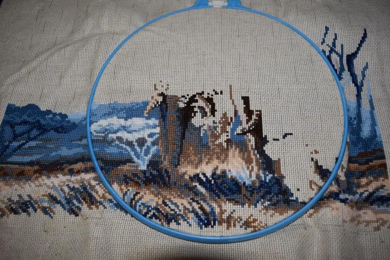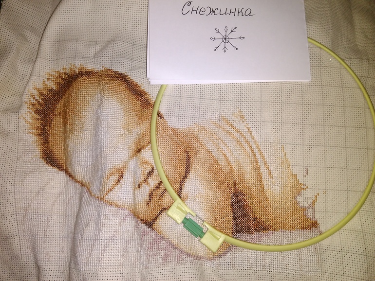 Всем привет! У меня сегодня не густо((( всего 171 крестик с учетом канвы...и обнаружила что ниток не хватает! А именно одного молочного оттенка и похоже что белого тоже не хватит (насчет него не переживаю т.к белый он и в Африке белый), а молочный поеду покупать видимо...