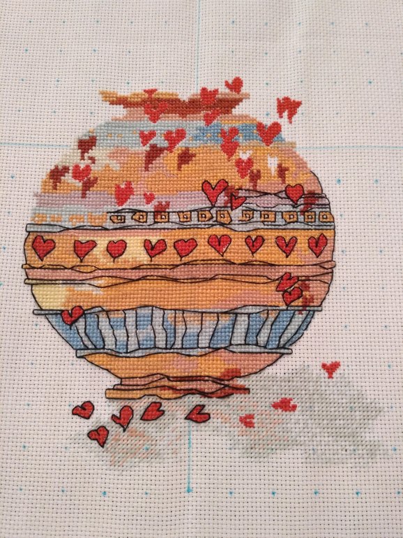 Привет! Сегодня 389 крестиков и полукрестиков в 2 и 3 нити + 8% (темная Аида 18). Итого 420. У нас похолодало резко - позавчера +21, сегодня +7.