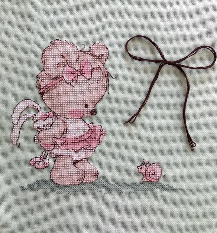 Девочки может быть кто то вышивал сынишку от алисы.нужны номера ниток в гамме для мишки.те что я нашла совсем не подходят😢😢😢