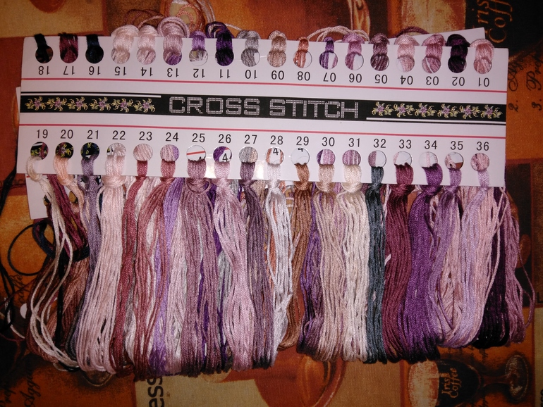 Нитки от какого-то китайского набора в розово-фиолетовой гамме: