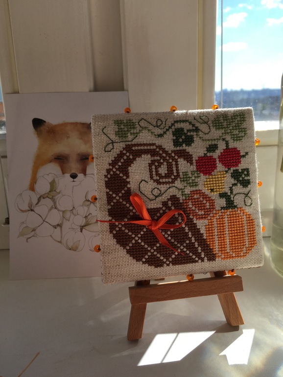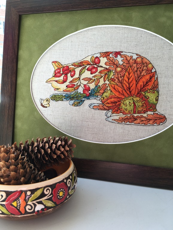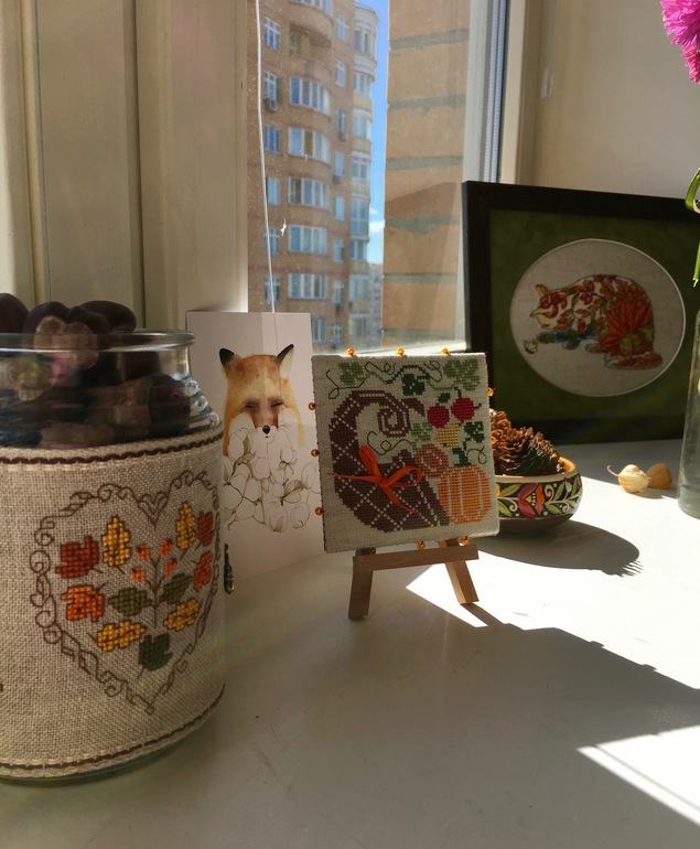 Дома у меня по-сеннеему красиво и уютно )))) Все работы вышиты в разные годы и оформлены тоже в разные годы . Только одна прелесть вышилась недавно , но о ней попозже )))