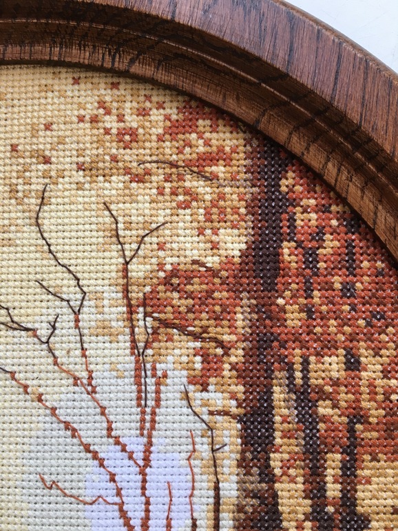 На Круге хочу остановиться подробнее , чтобы не писать отдельный постик )))) ) ) Оформила совсем недавно . Так громко сказано, оформила ! пошла купила готовую дубовую круглую рамку , принесла домой , смастерила как пинкип сзади ( по кругу нитью стянула ) и закрыла картоном ))) Стекло убрала, потому что захотелось натуральности ))) Красота поближе :