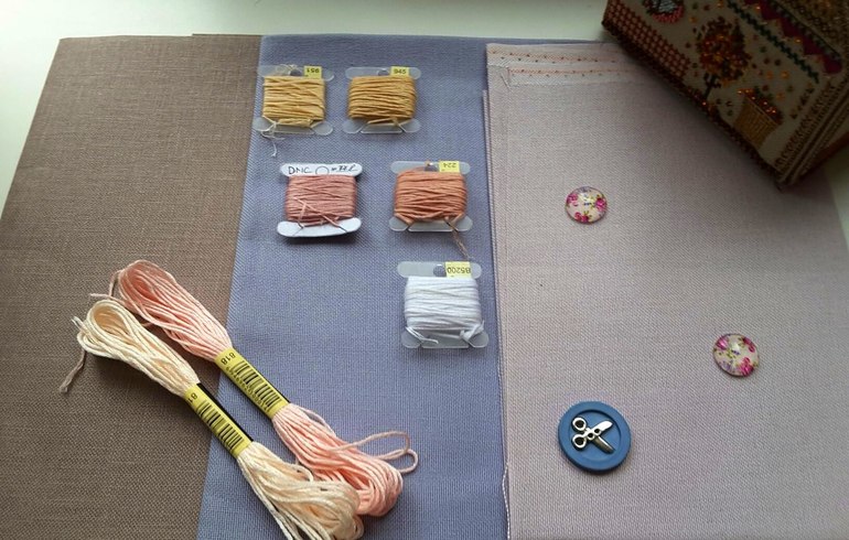 Это мой первый совместник) В планах вышить детский сэмплер от Алены Кошкиной. Вышивать буду с нуля. Для работы всё подготовила, но, когда наконец дождалась посылки с недостающими ниточками, куда-то задевала пакетик с подготовленными имеющимися( Второй день ищу, но пока безрезультатно