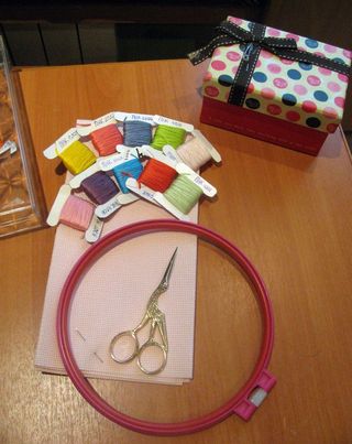 Приготовила все для работы- Канву ,схему, нитки .И поняла... что во всей этой истории меня больше привлекает компания !!!!! а не работа