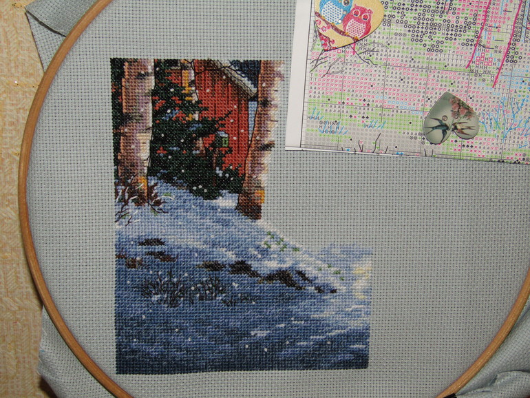 Привет! Я на этой неделе опять очень была загружена, почти не вышивала. Успеть бы к нг с этой картиной ... (( Традиции... Чего-то такого особенного нет, с рождением дочери стали нг отмечать весьма необычно, а именно дома )) без гостей и застолья. Бутылка хорошего шампанского, легкая закуска и спать сразу после боя курантов ))) Вот такая новая традиция у нас завелась в связи с родительством )