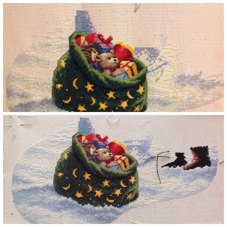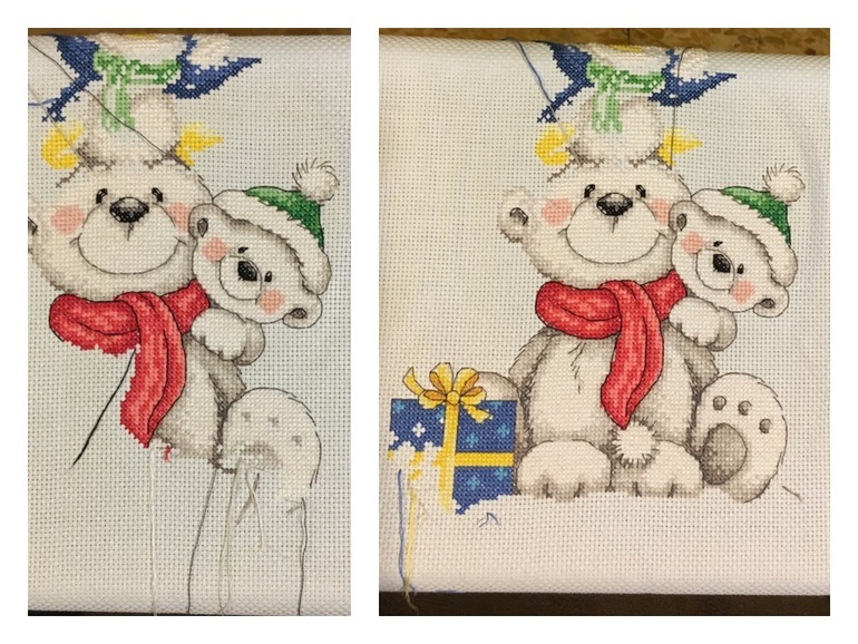 я на этой неделе не вышивала... на работе закрутилась, дома сил нет ни на что, засыпаю с дочкой вместе. да и если честно, не хочу я что то шить своего снеговика, не нравится сочетание цветов.