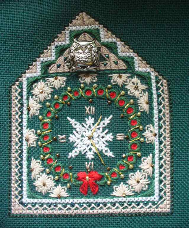 А еще я начала вышивать новогодние часики по авторской схеме Нины Перегонцевой.