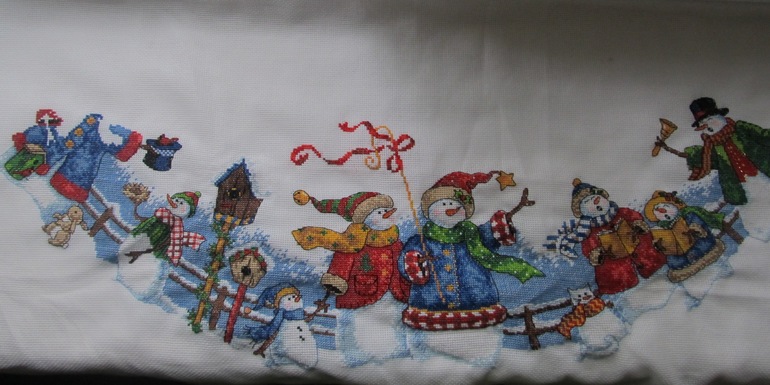 Привет. Сейчас вышиваю последнего снеговика. Он оказался самым толстым и продвижения очень маленькие