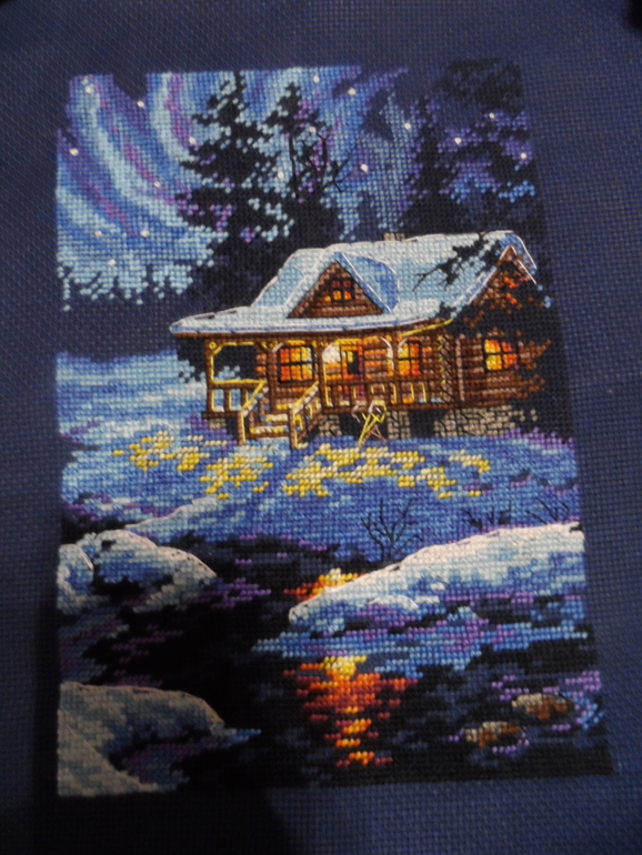 шила на блестящей канве 14 каунта, кстати китайские нитки мне понравились!
