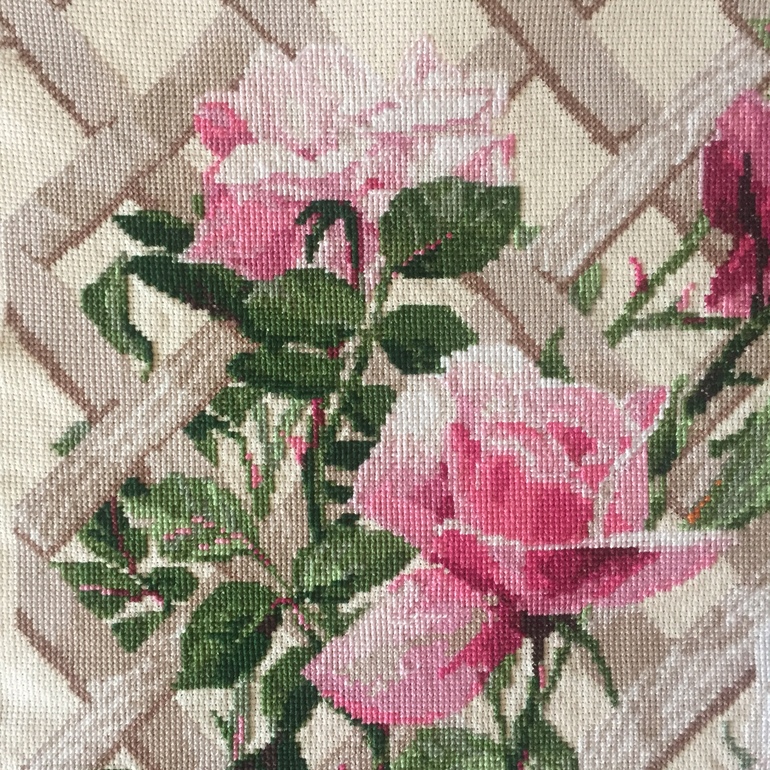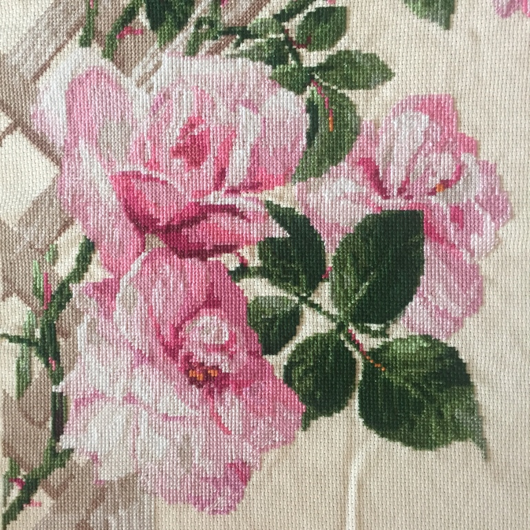 Риолис, "Белый шиповник". Оформляла сама, на счет рамки еще думаю, поэтому пока не натянуто...