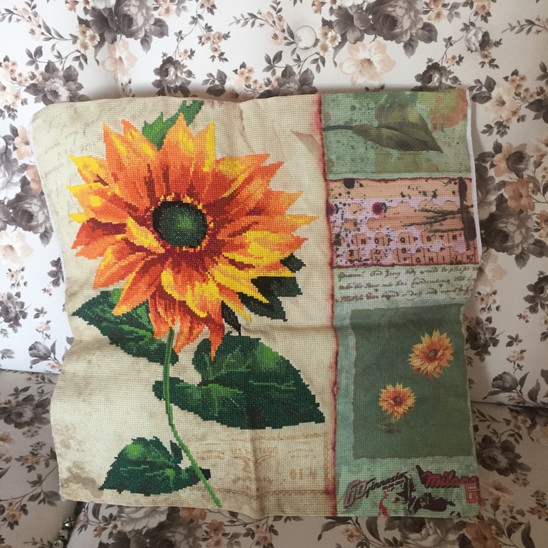 Еще одна китайская подушка (вышит только большой подсолнух). К ней еще будет пара...