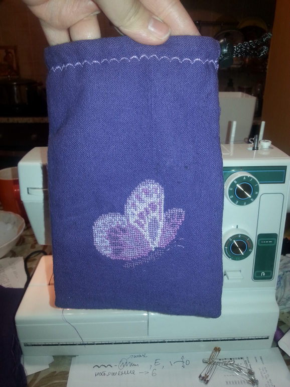 Попробовала вышивку на трикотаже (закрывала дырку))). Ну его, лучше аппликацию делать - не получаются ровные крестики(((