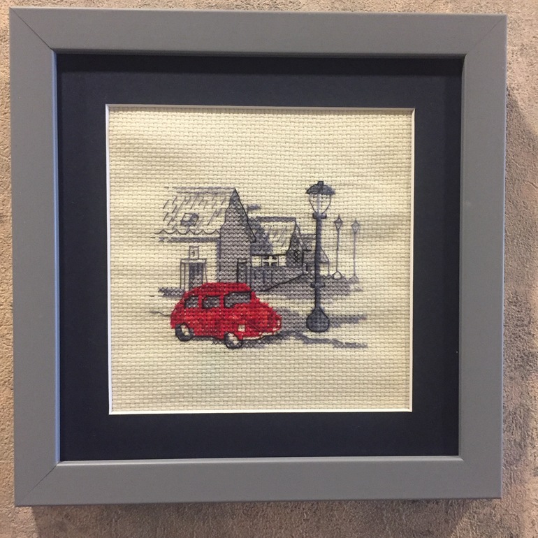 Пермин, "Путешествие красной машинки". Вышивалось подбором, тайком, мужу на день рождения. Он-то к вышивке равнодушен, но за месяц до праздника сбылась его мечта - мы купили машину, красную)))) Натягивала сама, впервые - двусторонний скотч нифига не держит(((