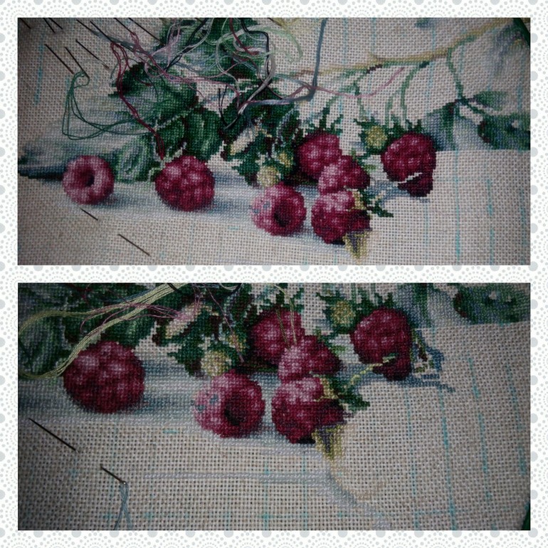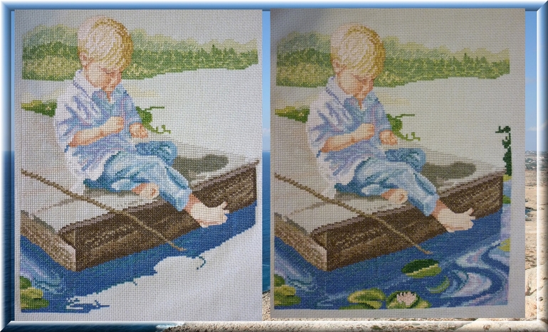 У меня же в вышивке еще лето. Воду я все-таки "доколупала", осталась зелень и бэк немножко:
