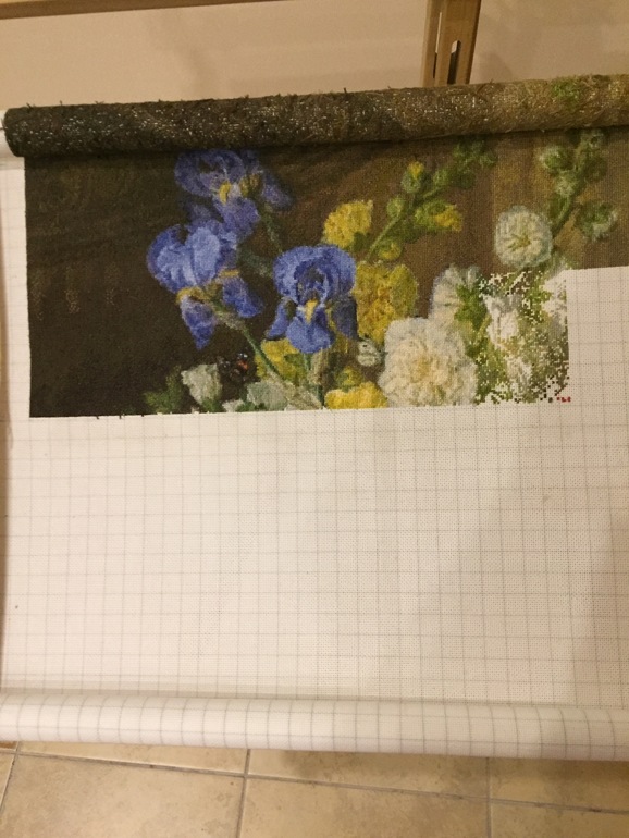 Но сам виноват - проказник ))) Вышивка хорошо продвинулась - верхний край приобрела ))) Сыночку - поскорее выздороветь