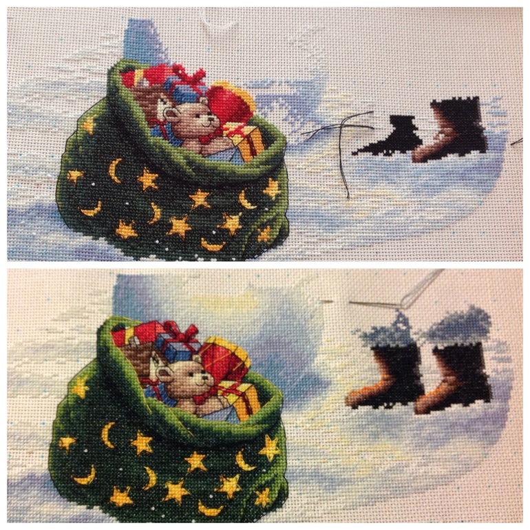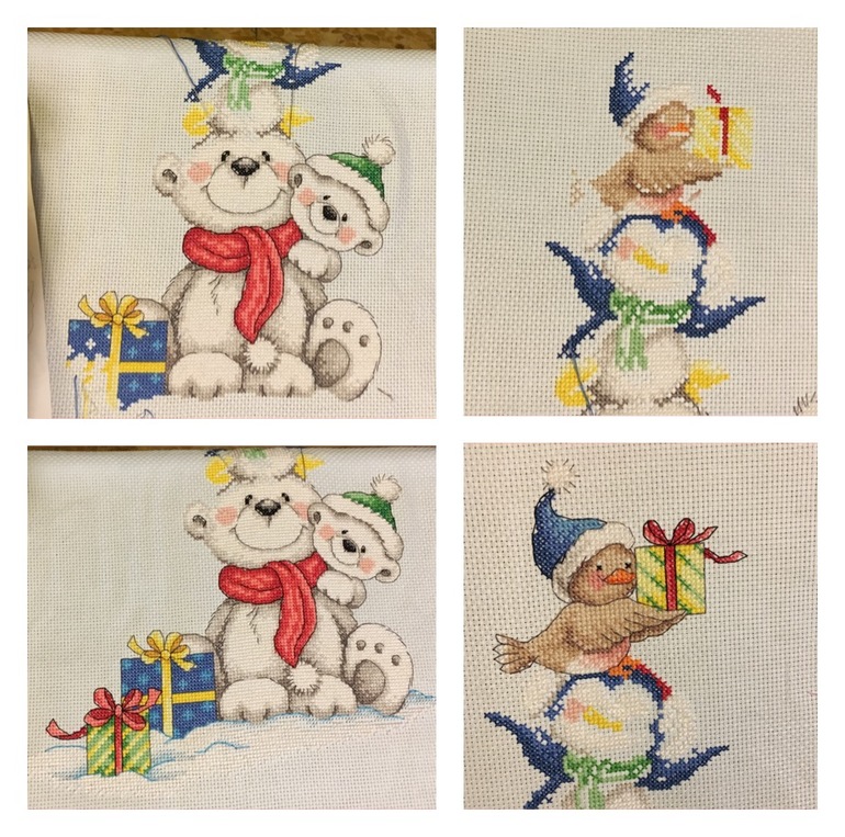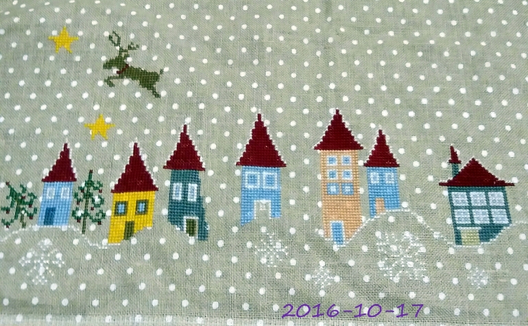 Привет! В прошлый раз ничего не показала, к этому отчету немного повышивала. Осталась пара елок и летящая над городом компания))