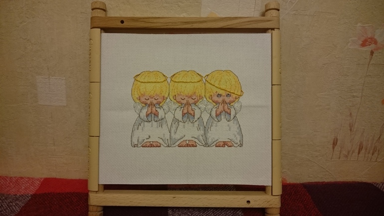 Ох, я вышивала этих ангелочков 3 года назад и до сих пор все также.В этом месяце решила оформить работу, вдруг так сработает. У меня стимуляция в этом месяце.