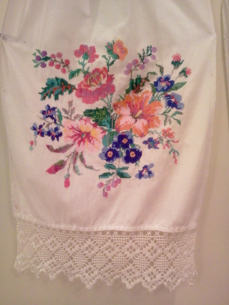 Ретро-вышивкаВообще я очень люблю ретро-вышивку. Моя бабушка очень хорошо вышивала гладью, но мама по глупости почти все выкинула. Уцелели только две работы - гениально выполненная большая скатерть гладью, заляпанная застарелыми желтыми пятнами, и батистовый абажур в технике ришелье, прожженный в одном месте. Это все нужно реанимировать, в следующее лето займусь этим обязательно и вам покажу, а пока - вот такая красота, которую я сфотографировала на работе.