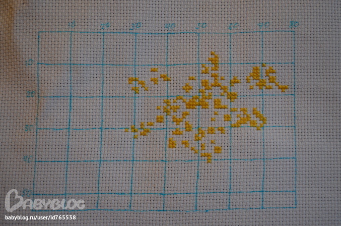 Готово) Сначала хотела бисером вышить, но бисер и мононить вразброс на равномерке - это что-то))) Поэтому буду ниточками.