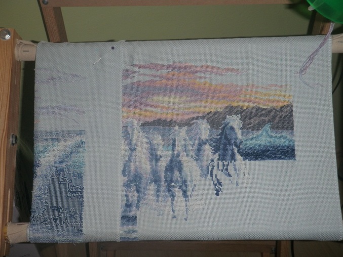 Собственно вышивки осталось на пару часов, но потом еще будет бэк и фрузелки :) В общем, в следующем отчете ждите моих скакунов оформленными :)