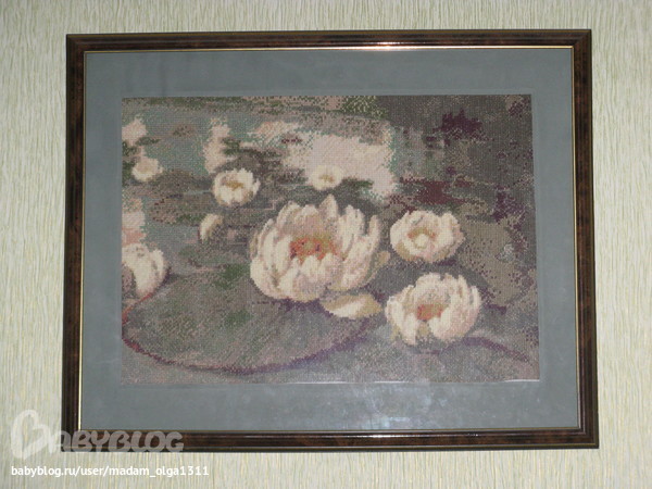 После нее вышились кувшинки (схему купила накануне переезда), которые несмотря на все недочеты очень люблю