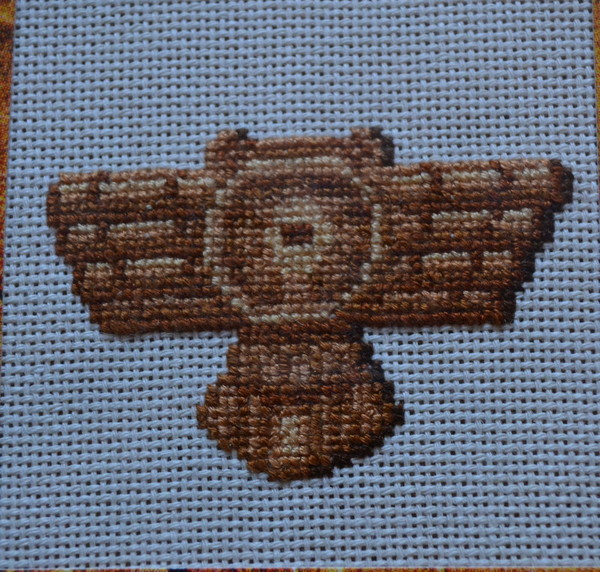 ну и поближе-канва равномерного переплетения (22 или 25 каунта,точно не знаю) крест через 1 нить и никакой разметки-сейчас смотрю-и как я шила такие мелкие крестики-меньше чем аида 18..
