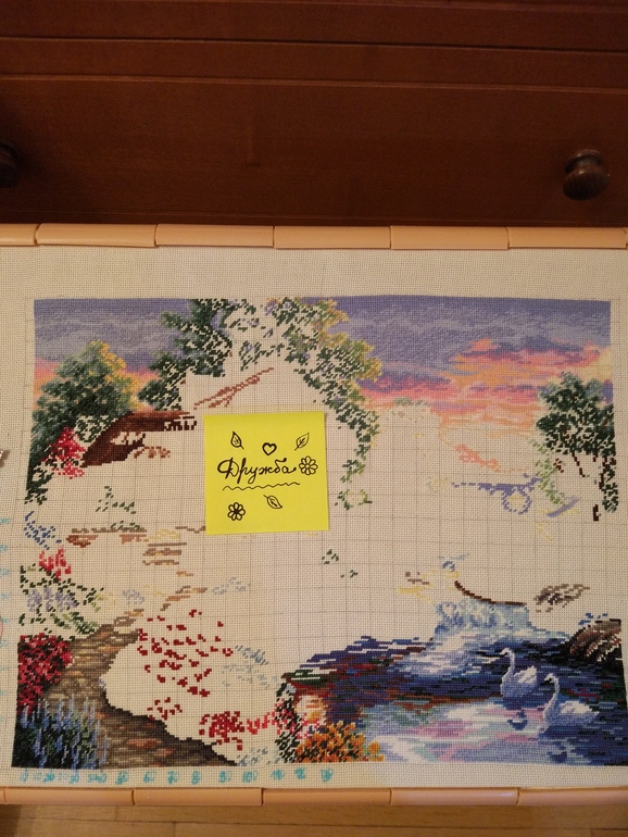 У меня второй день золушки. Сегодня гладила столько, что не в сказке сказать... Вообще выходные у меня тяжело идут в плане рукоделия: то есть готовишь, то в парк надо тащиться. И только приземлишься, так сразу все думают, что я сижу без дела) Так что всего 362 крестика. Но зато я близка к завершению, и рассчитываю если не завтра, то уж точно послезавтра.