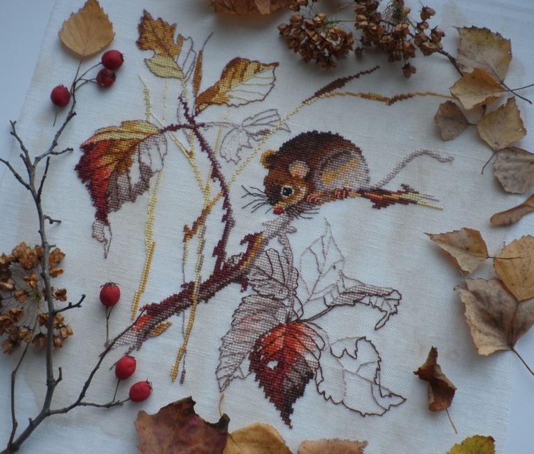 Для осеннего конкурса в рамках ВД у меня вышилась мыша))