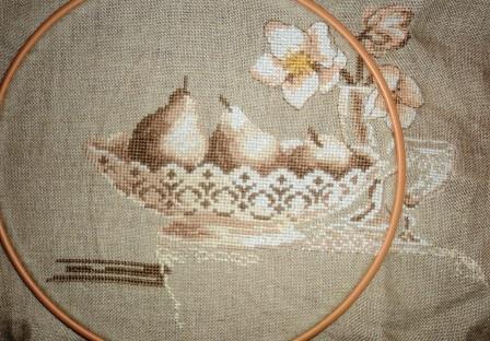 Привет, сообщницы! Мне удалось повышивать в воскресенье, в результате чего нарисовался столик:) Лёгкая часть вышивки закончилась, осталась только скатерть, поэтому мои черепашьи темпы превратятся в темпы черепашки-пенсионерки:(