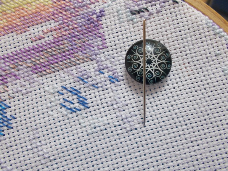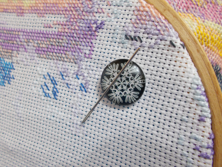 Этими магнитами и схему прикреплять удобно, и ткань лишнюю можно подвернуть и прихватить.Многофункциональные магнитики. И конечно, иголку не потеряешь.