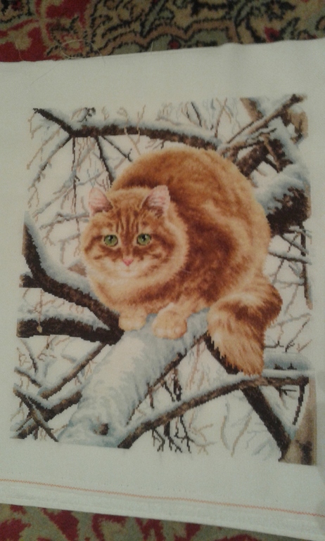 Отпадный котище! Когда-то очень хотела себе такой набор, но не захотела вышивать кучу снега и веток.
