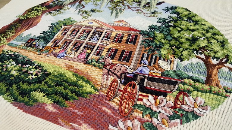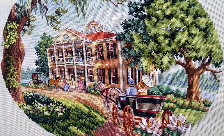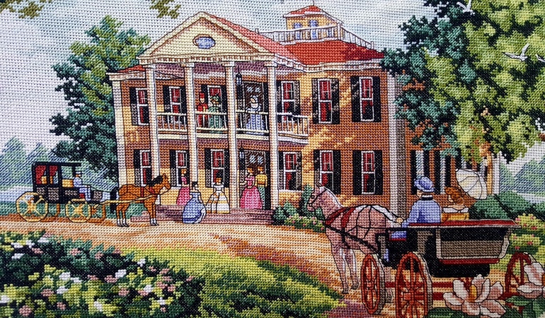Вышивка крестомБыла когда-то страна искусных наездников и хлопковых полей, звалась она Старым Югом. Там, в дивных уголках, застыла в прощальном поклоне сама галантность, там жили последние рыцари и их прекрасные дамы, последние хозяева и их рабы. Теперь об этом можно прочитать только в книгах, теперь это не более чем сон, который трудно забыть, это целый мир - унесённый ветром..."