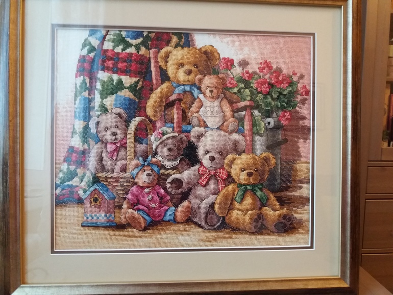 Вышивка крестомВот и готов мой долгострой!!! Вышивались мишки с огромным удовольствием и легко!!! Дизайн очень красивый!!! Оформляла в своей любимой багетной мастерской,результатом довольна)).