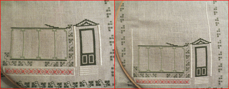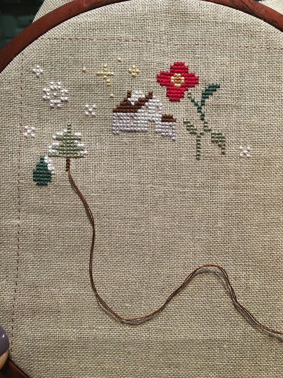..я, как обычно, в последних рядах) ..Мы продолжаем болеть почти всей семьей, из-за этого настроение у меня было не ахти.. на вышивку не тянуло совершенно(( ..сейчас немного уже отпустило, и маленькое продвижение домика могу показать:
