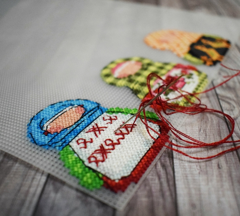 Вышивала на пластиковой канве 14 каунта, все пальцы исколола( Но они такие милые получились, что стоили того) Оформлю потом в игрушки на елку)