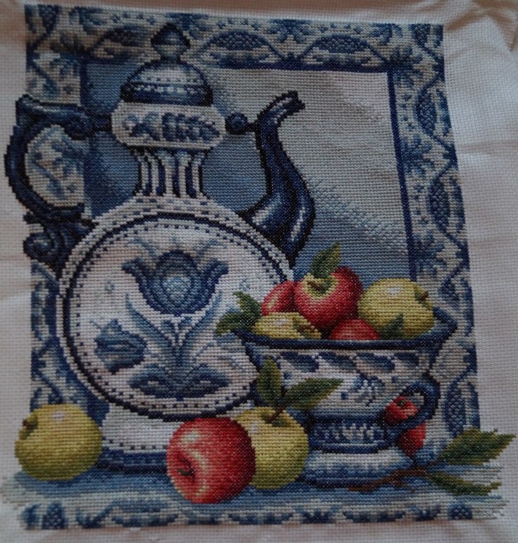 Взяла иголку в руки как младший стал ходить самостоятельно, времени стало чуть больше и я достала свой долгострой "Наливные яблочки" от Панна. Хотели их дошить еще 2015 году, но не получилось и закончила их в январские праздники 2016 года.