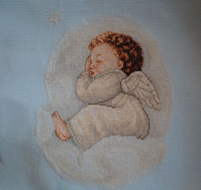 После него я стала вышивать "Ромашки" от Риолиса для мужа и "Спящего ангела" для сына троюродной сестры.