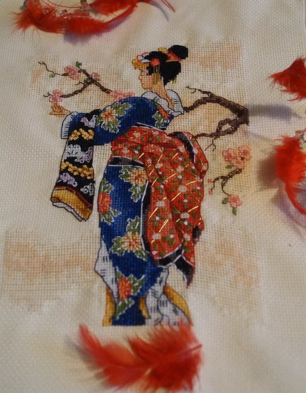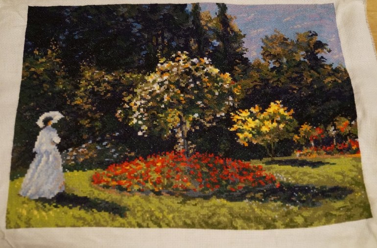 и "Даму в саду" самая моя большая работа этого года. Очень долго ее вышивала. С большими перерывами.
