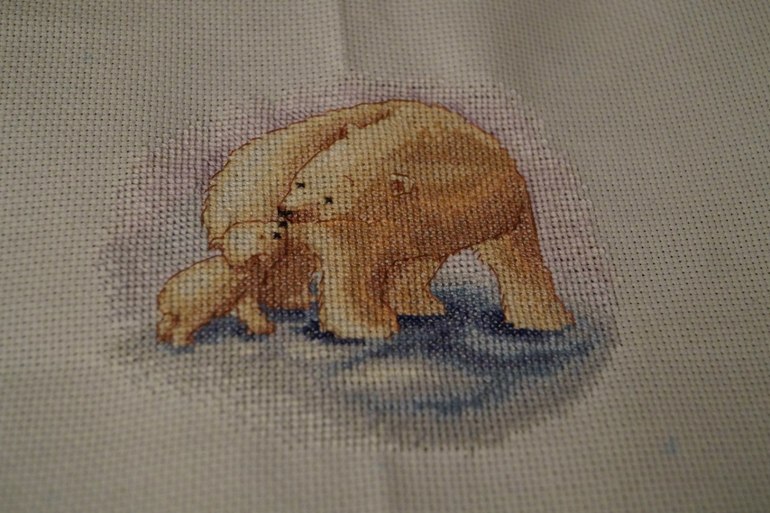 Весной участвовала в Авторском совместнике, а летом в Морском организовывала его Юлия. Благодаря им вышила "Умку" по авторской схеме Ирины Нескородеевой