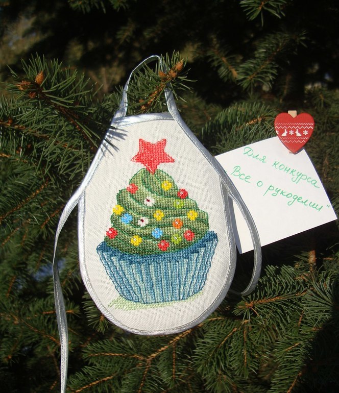 И фартук на бутылку, схема из журнала "Все о рукоделии" № 10 (35) декабрь 2015. Основа Линда, фрузелки заменила на бисер.