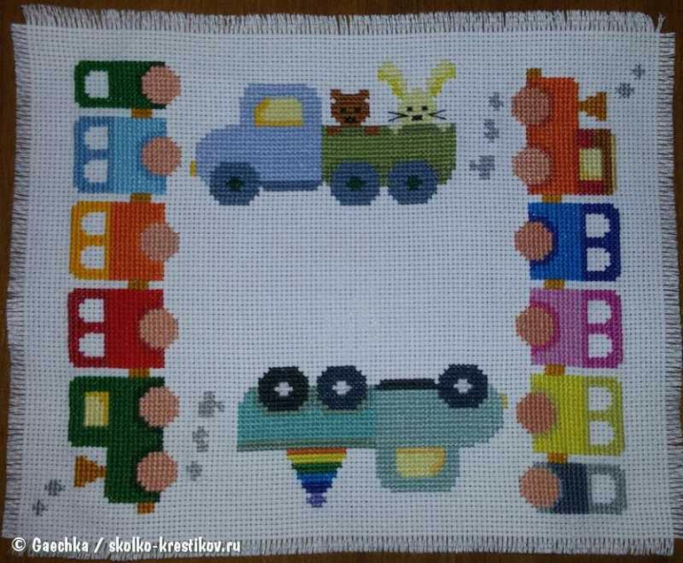 Очень классные метрики! Салфетка с паровозами супер! И работа лентами шикарна! Сложно лентами вышивать? У меня лежит набор маленький, но боязно)