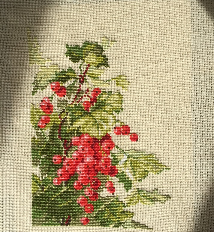 Спасибо))) Смородину забросила из-за шерстяных ниток. Мне казалось, что они криво ложатся, из-за этого сильно затягивала крестики.