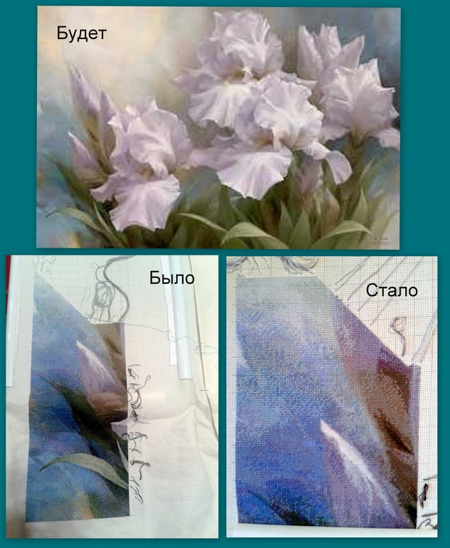 3 листа это не много. Лично я, склеиваю их между собой и вышиваю смысловыми пятнами, рядом еще 3 склееных листа второго ряда, чтобы при необходимости (дошить с иглы нитку) переходить вверх. Обязательно маркером выделяю готовое. Иголок у меня много, но заправляю только когда полностью разберусь в схеме.