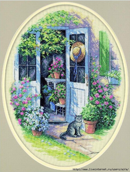 Есть вопрос!Здравствуйте, меня зовут Наталья. Помогите пожалуйста подобрать нитки к набору "Дверь в сад" от Дименшес. Буду очень благодарна за фото ниток.