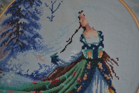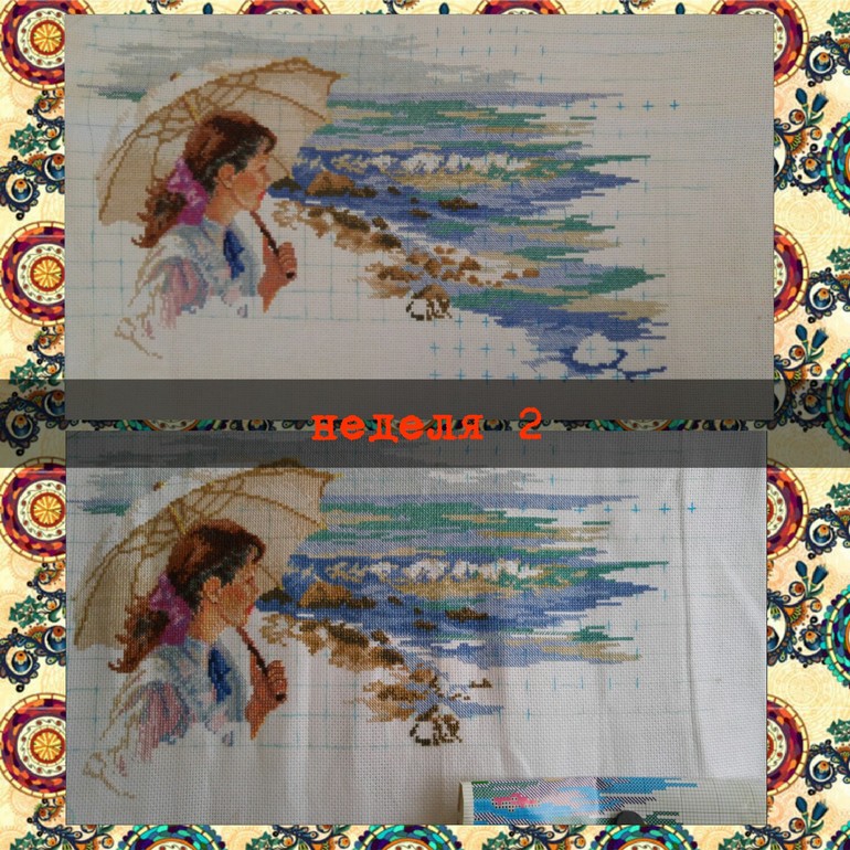 Всем привет! Что-то сложная неделя, много разных дней рождений))) море растет. Но что-то подустала я от этой вышивки, хочу начать другую, а эта пусть пока полежит.