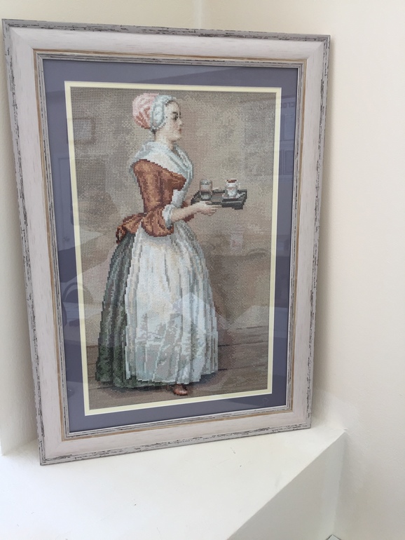 Прекрасная работа и замечательное оформление! Я с тех пор, как оригинал картины увидела, с трепетом отношусь к ней. До того дамочка с подносом и все )) А оказалось, она волшебная!