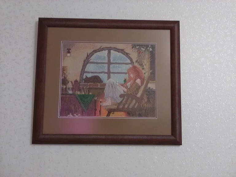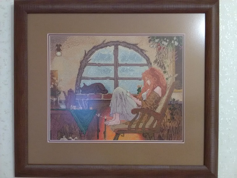 Вот и оформилась моя "Девушка Осень". Это моя первая оформленная работа в багетке, так что с почином меня!)) Двойное паспарту, антибликовое стекло, багет пластиковый.