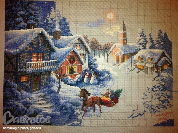 продвигается работа, красота)) у меня такой же сюжет на юбочке для елки вышит)